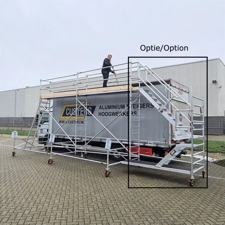 Prevent dangerous situations on the road! The Custers ice platform has been developed to safely remove snow and ice from your truck or trailer. User-friendly and with a long service life. The rollable platform is positioned lengthwise along the vehicle and has a length of 3.1 m. However, the platform can easily be extended. Alternative platform lengths are available on request.